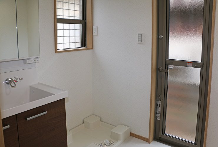 洗面脱衣室です。勝手口がついています。